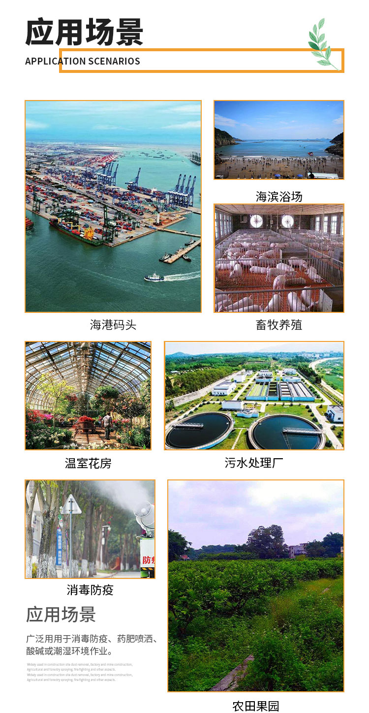 主要用途:農貿市場、工廠、畜牧養殖、城市街道、垃圾處理廠、學校、焦化廠、煤場、礦場、港口碼頭等。