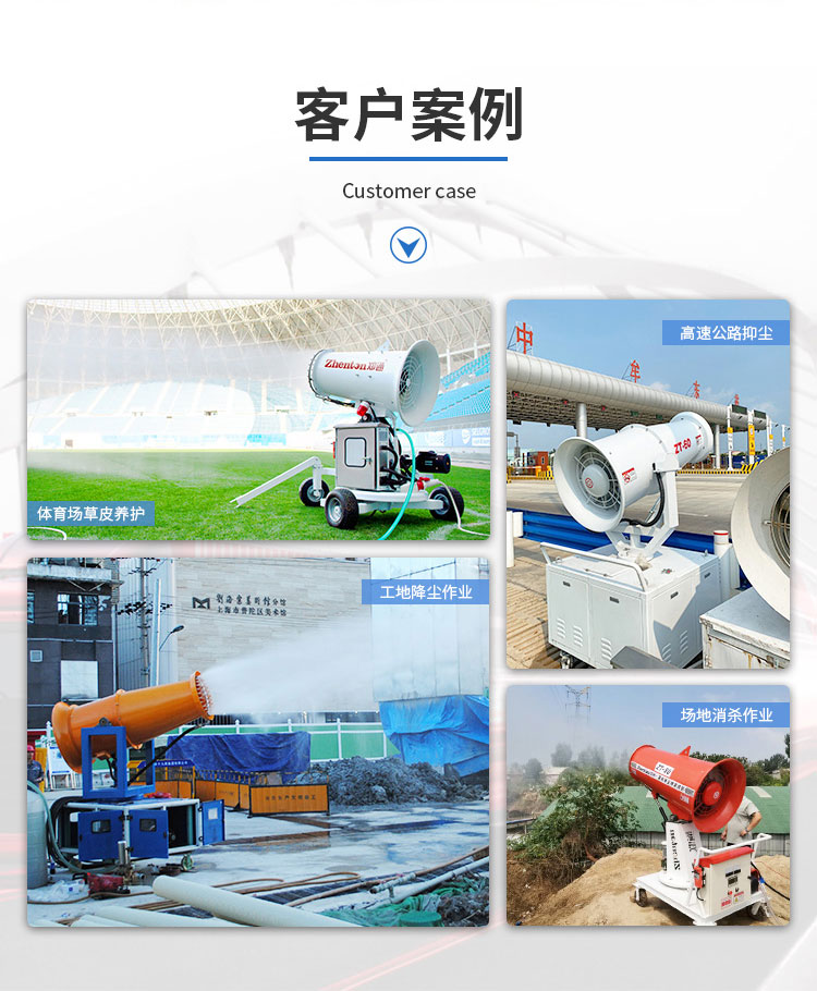 主要用途:建筑工地、冶金鋼鐵企業、采礦區域、煤化工企業、水泥廠、火力發電廠、建筑工地、物料和礦產品露天堆放廠、混凝土處理廠、垃圾堆放場、垃圾焚燒廠、沙廠、干式物料倉庫、露天爆破、重度粉塵區域。